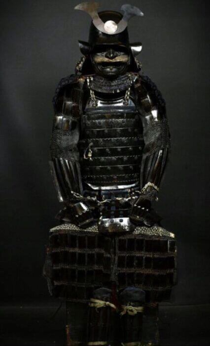 -Zboroja samuraja Tosei Gusoku -Epoka: okres Edo (XVII–XVIII wiek)-Materiały: żelazo, lakier, jedwab, skóra, włosie końskie-Japonia